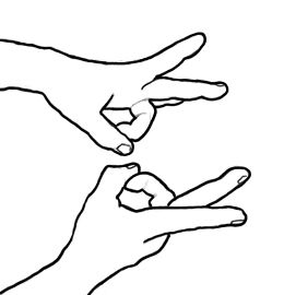 Placer chacun des pouces (côté paume) sur les annulaires (sur les ongles)